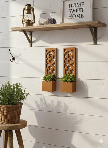Flower Succulent Planter Box Wall Hanging Candle Wall Sconce Holder Vine Carved Wood Wall Art Panel. Set of 2 Color Options Available